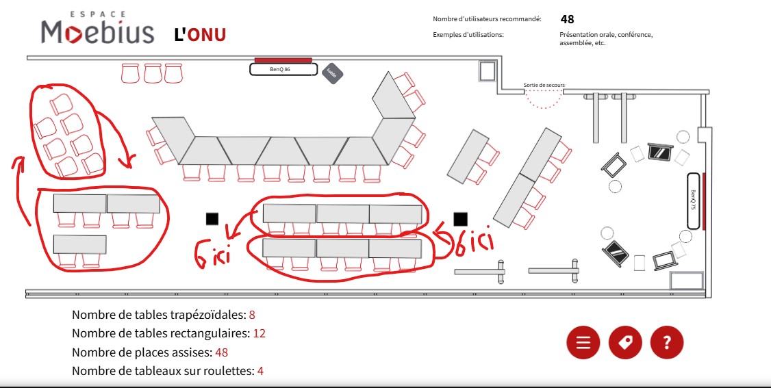 D2702#90612 Disposition: L'ONU avec légères modifications - Souhaitez-vous utiliser un moyen de projection : Oui - Téléviseur interactif : 2 - Projecteur interactif : 0 - Boutons sonores : Oui - Verres de couleur : Oui - Aimants : Oui